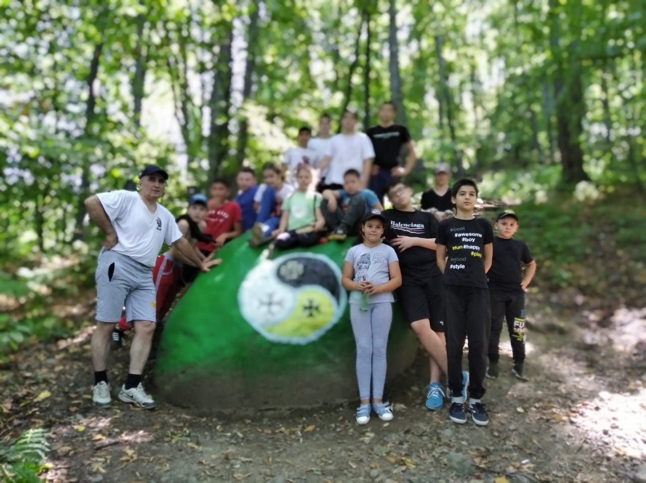 При забеге на Сапитскую за нами увязался щенок. Пробежал со всеми всю дистанцию, до самой вершины. Побыв некоторое время на финише, пофотографировавшись мы стали спускаться. Только вот щенок остался лежать на земле. У него не было больше сил. И тогда ребята, по очереди, передавая его всю дистанцию из рук в руки, спустили его вниз. На месте сбора щенок, наевшись и напившись, прямо там же и рухнул на траву. Заснул так, что, шум и визги детей его не разбудили. В одном и том же положении…