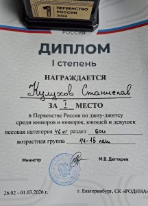 В возрастной категории до 16 лет, в весовой категории 48 кг. среди юношей отлично выступил Кулухов Станислав (раздел «Бои»)