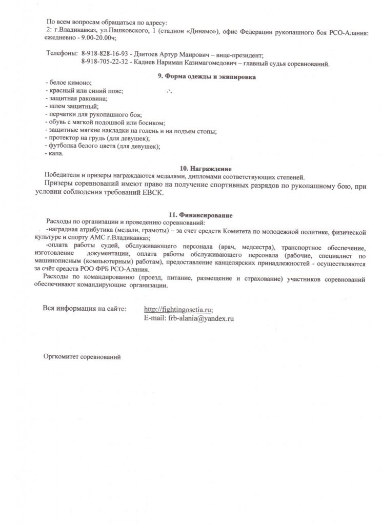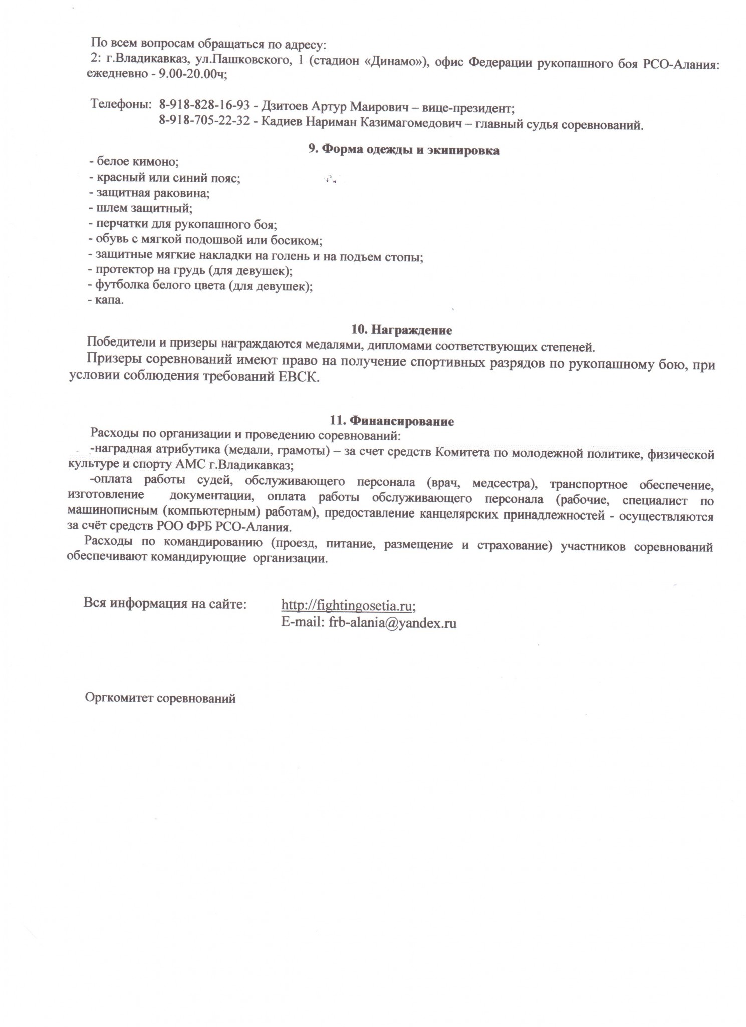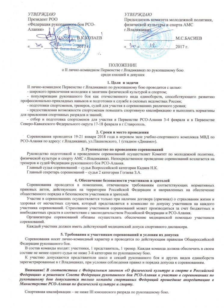 Положение о II Первенстве г.Владикавказ по рукопашному бою среди юношей и девушек 10-11, 12-13, 14-15, 16-17 лет