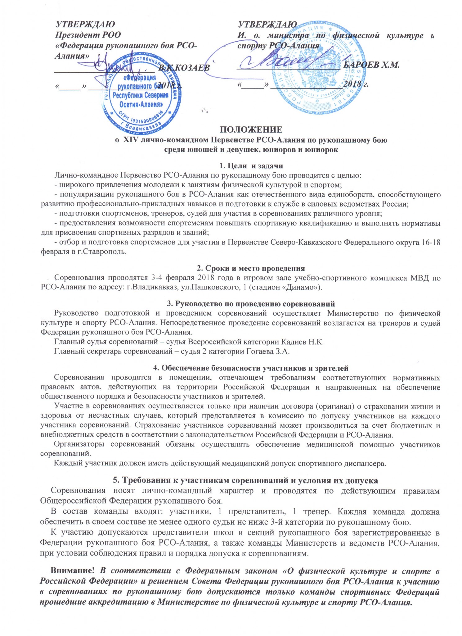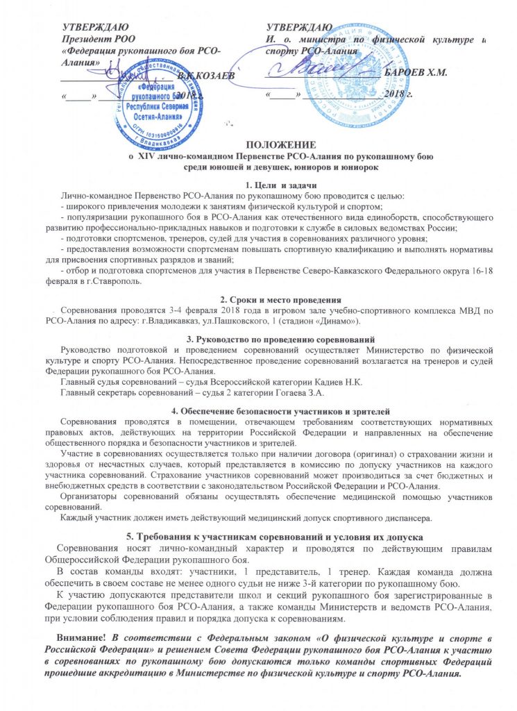 Положение о XIV Первенстве РСО-Алания по рукопашному бою