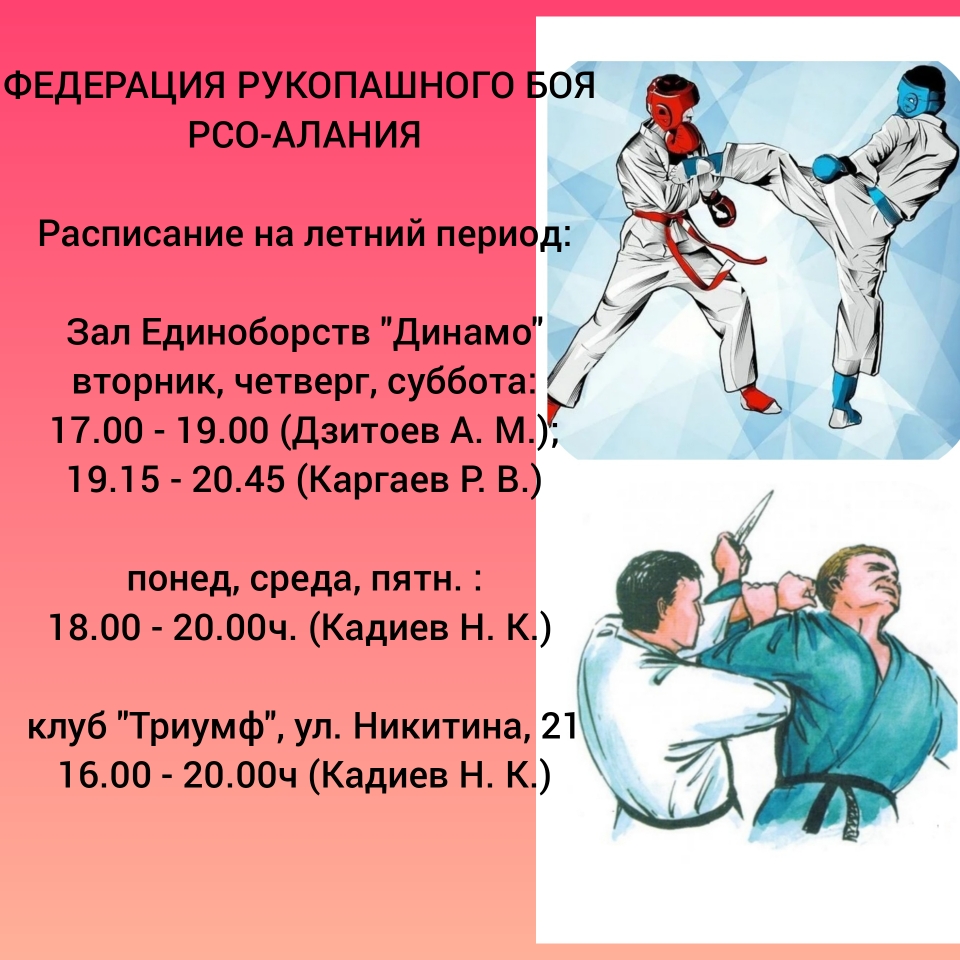 Расписание тренировок на летний период 2022 года