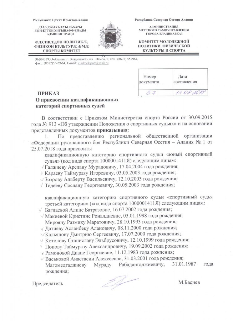 Вручение судейских категорий по рукопашному бою